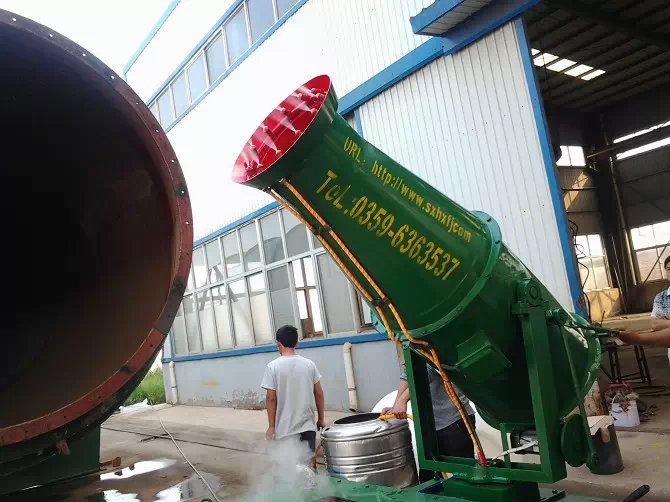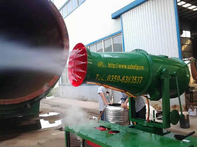 功力強(qiáng)、射程遠(yuǎn)、覆蓋范圍廣、可實(shí)現(xiàn)精量噴霧;工作效率高、噴霧速度快;對(duì)容易引起塵埃的堆場(chǎng)噴水除塵時(shí),噴出的霧粒細(xì)小、與飄起的塵埃接觸時(shí),形成一種潮濕霧狀體,能快速將塵埃抑制降沉。
